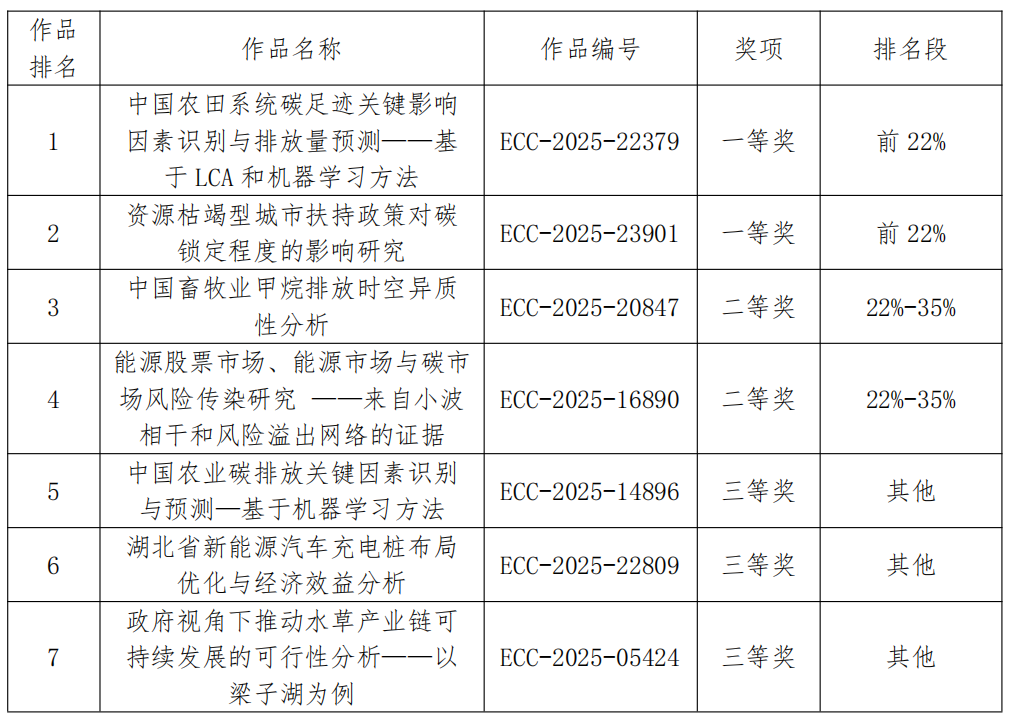 第十一届全国大学生能源经济学术创意大赛,我校报名19项,提交作品12项,经形式审查,有效作品12项。经学校组织评审,本科生组共4项作品获奖,研究生组共3项作品获奖。其中一等奖2项,二等奖2项,三等奖3项,具体名单公示如下。