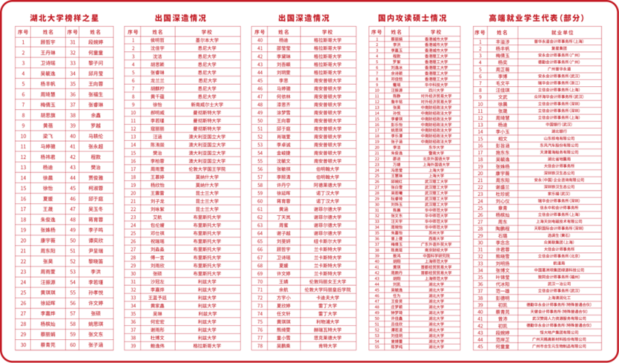 (四)历届毕业生就业率高,就业质量好。毕业生多数入职四大会计师事务所、大型国企、500强等优质名企,出国留学的同学,大部分进入世界TOP100名校留学深造,国内升学的同学,部分考取国内985/211/双一流高校研究生。