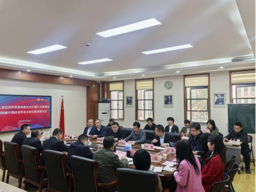 3月28日下午,湖北省经济学界团体联合会六届八次理事会暨构建中国经济学自主知识体系研讨会在我院举行,来自全省高校、科研院所的专家学者及我院教师代表30余人参加会议。