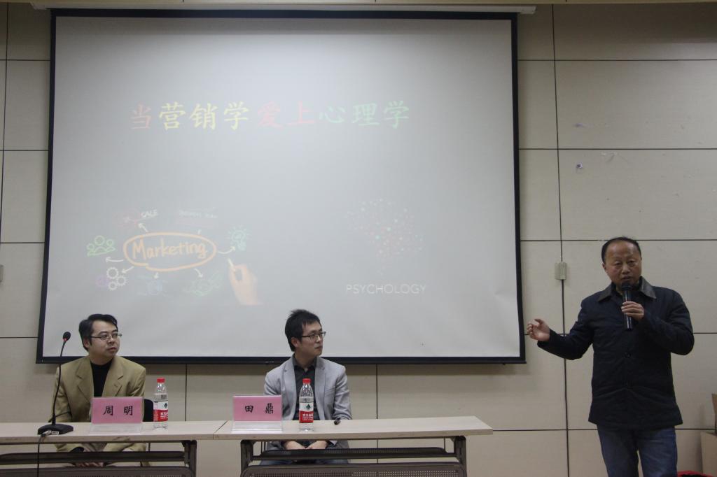 “田鼎:雄性,安徽亳州人;田鼎=吃货。”田鼎在 “当营销学遇上心理学”讲座上诙谐地自我介绍道。3月10日晚上7点,市场营销协会在太阳成tyc9728集团二号报告厅举办了此次讲座,太阳成tyc9728集团市场营销系主任杨礼茂,硕士生导师周明,加拿大阿尔伯塔大学博士田鼎,老师许志玮和辅导员肖朋参加讲座。