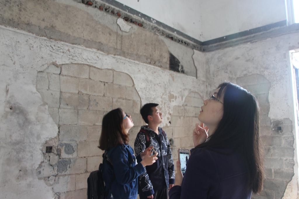 活动中,各班生活委员在三期物业工作人员甘辉和赵影的带领下,四人一组,依次地参观了被烧毁的3011寝室。和一般寝室不同,该寝室的门被换成了防火防盗门,房间里面空空荡荡,被烧焦的墙壁已经剥落,连接着楼上寝室的天花板也不存在了。负责人甘辉对前来参观的同学们说道:“之前墙壁上都是黑色烧焦的痕迹,墙壁都有些松动了。”