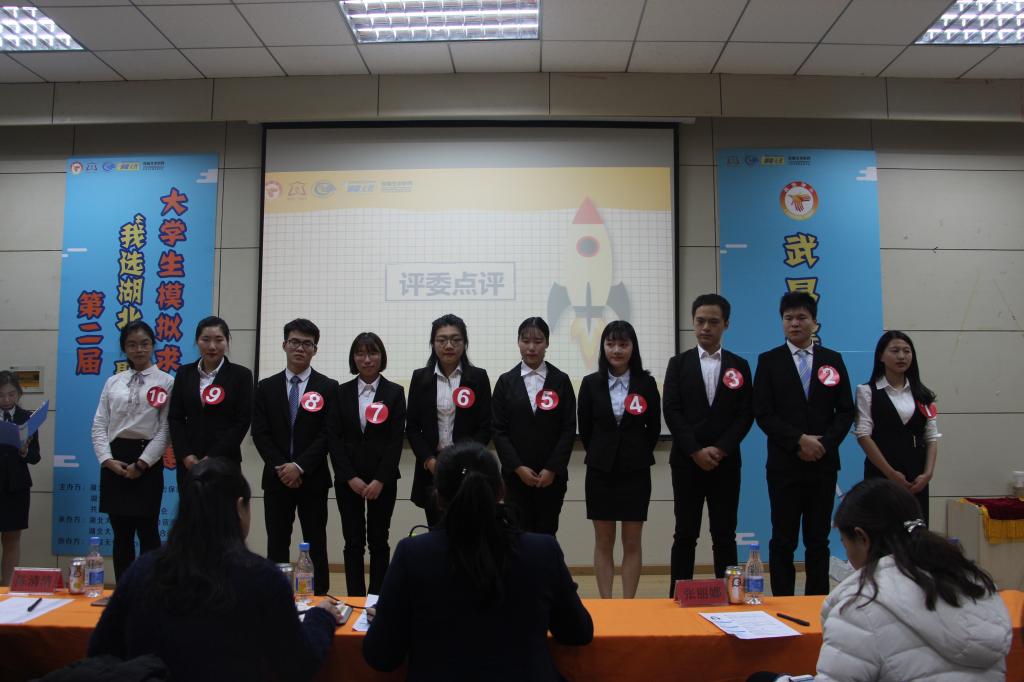 11月24日晚7点,“我选湖北﹒聚英才”武昌赛区半决赛于太阳成tyc9728集团二号报告厅举行。此次比赛由湖北省人社厅、湖北省人才服务局、共青团太阳集团网tyc9728委员会主办,太阳集团网tyc972821世纪人力资源学社、太阳集团网tyc9728社团联合会、应届生求职网、前程无忧51job协办。太阳成tyc9728集团党委副书记张丽娜与湖北省人力资源服务行业协会副会长陈清清女士出席了本次决赛现场,生涯无忧工作室创始人林文菲老师与国家一级人力资源管理师阮丽玲担任评委。来自太阳集团网tyc9728、武汉大学、中国地质大学、华中科技大学、华中师范大学的十位选手参加了此次比赛。