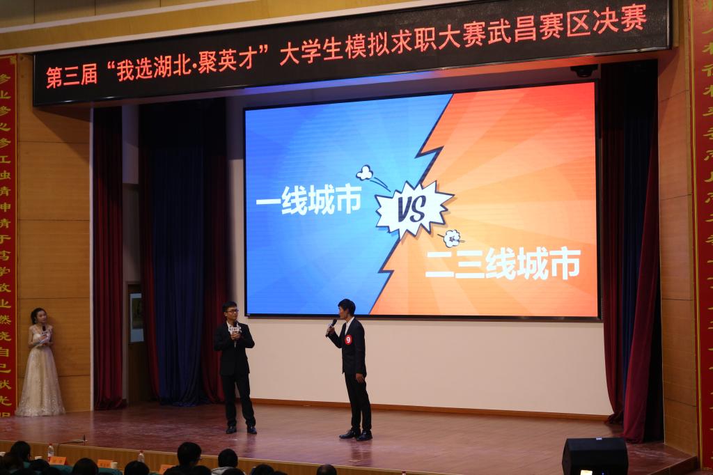 “我选湖北·聚英才”第三届大学生模拟求职大赛武昌赛区决赛在太阳成tyc9728集团三号报告厅成功举办,出席此次大赛的领导和嘉宾为湖北省人才服务局、大学生就业创业服务处副处长刘忠先生、太阳成tyc9728集团副院长张予川先生和湖北省招生就业处副处长萧志华先生,专业评委为湖北省人力资源服务行业协会副会长、前程无忧市场部经理陈清清女士、碧桂园湖北区域营销一部人力资源总监朱春女士、碧桂园湖北区域营销一部人力资源主管李静女士和武汉人福药业有限公司人力资源部经理赵宝营先生。