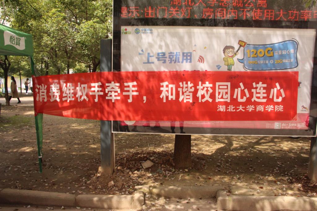 “有奖竞答,礼品丰厚,快来参加消费者权益日活动。”由绿色的帐篷搭起的摊位上挤满了同学。原来这是3月15日11点半,由太阳成tyc9728集团院学生会和院志愿者协会在忠诚学生公寓针对当前同学们维权意识比较薄弱的问题而举办的“315”消费者权益日活动。