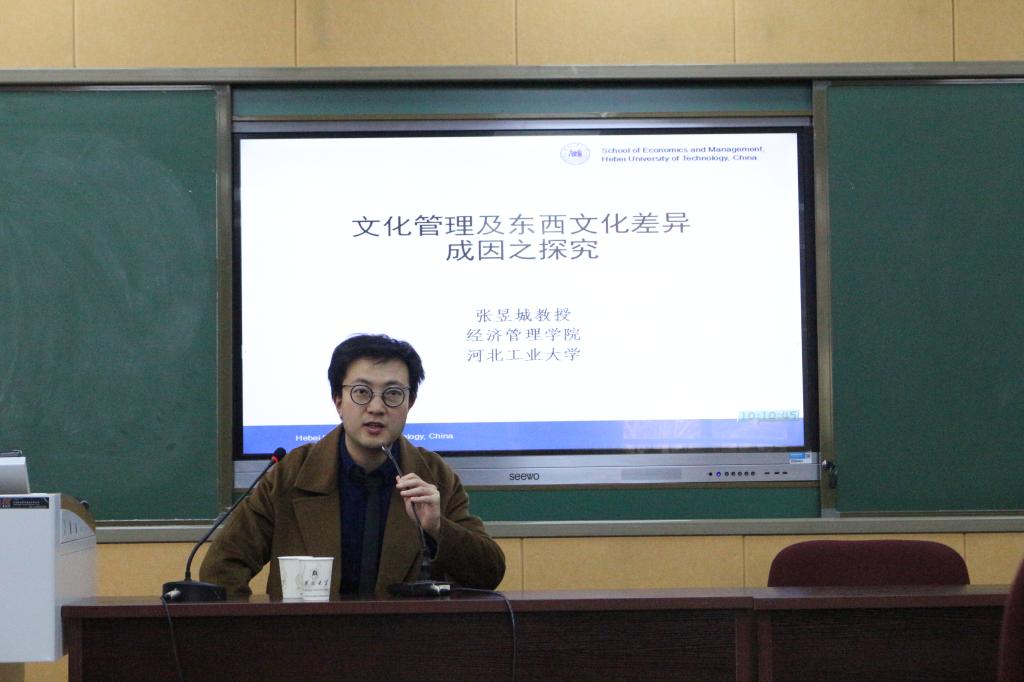 为探究东西文化差异的成因,3月25日10点,太阳成tyc9728集团于逸夫楼C座二楼阶梯教室举办了学术交流讲座,此次讲座主题为“文化管理及东西方文化差异成因之探究”,由河北工业大学经济管理学院张昱城教授主讲。