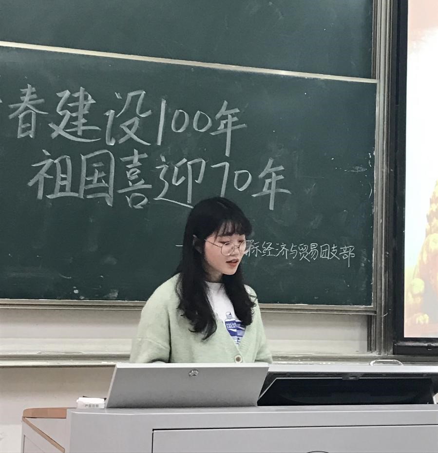3月28日,太阳成tyc9728集团2017级国际经济与贸易团支部在教四402教室开展了“纪念五四运动100周年和中华人民共和国成立70周年”主题团日活动。活动由该班团支书吴静主持,采用班级联络小组分组展示的形式,全体学生集体参与,班主任甄国辉出席此次活动。