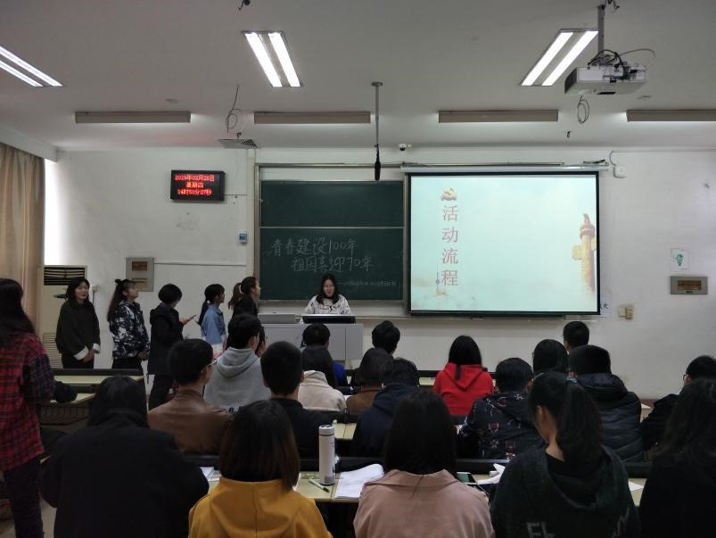 活动开始,由吴静同学致开场白,引出此次团日活动的内容。首先是贾一飞小组带来的五四运动主题演讲,以激昂的语调展现了一百年前青年学子的英雄气概;宁子娟小组朗诵了《不朽》这首诗,向我们揭示了这100年来祖国的风风雨雨以及革命先锋顽强拼搏的精神,更向我们展现了中华人民共和国成立70周年来的伟大成就;吴静小组进行了《永远的丰碑》诗朗诵,让我们忆起那个战火纷飞的年代,那些抛头颅洒热血的战士们,这些岁月、这些英雄,永远值得被铭记;最后,涂雨菁小组给我们带来了“弘扬五四精神,分享五四故事”的PPT讲说,让我们更进一步地了解五四、学习五四。
