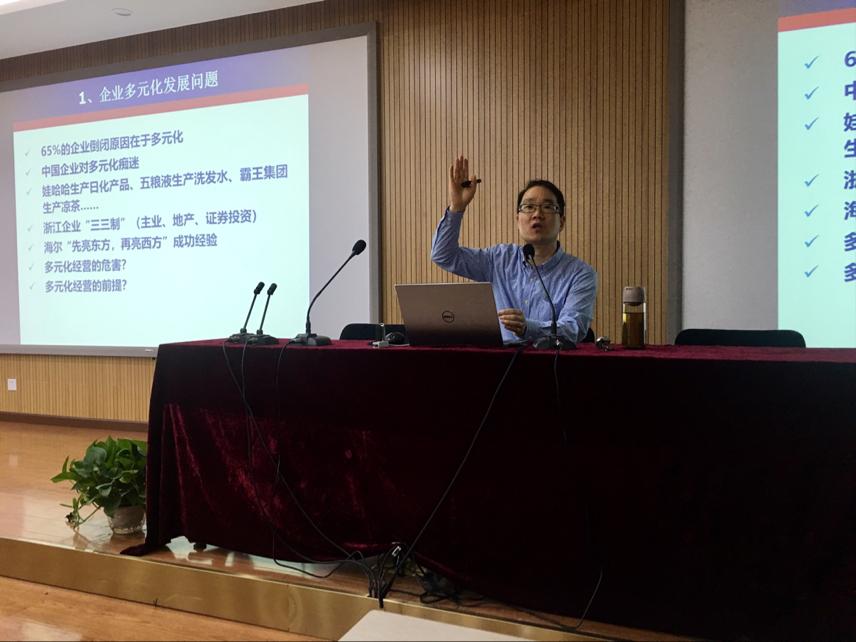 王圆圆首先指出做研究也要迎风口,并强调了研究前沿热点问题的价值和意义。随后他从企业多元化发展、分众市场价值竞争问题、企业文化管理问题等41个方面的前沿热点问题展开详细讲解。王圆圆在讲解热点问题时引用了大量国内外企业和他自身实例,其中三只松鼠的创业利用互联网电商风口跃升为坚果品牌前列的故事引发现场同学的热烈反响。他每讲完一个热点问题都会给同学们留下一些思考空间,引导和启发大家自主思考和解决问题。最后王圆圆鼓励同学们以前沿热点问题为导向,开展自己感兴趣的课题研究。