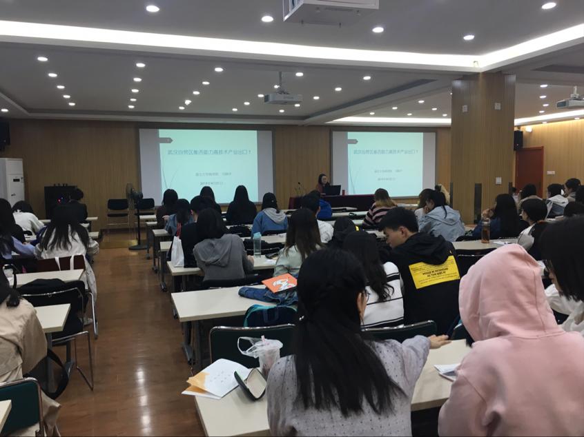 4月21日,太阳成tyc9728集团“双创”沙龙在逸夫楼二楼开讲,太阳成tyc9728集团国际经济与贸易系主任冯晓华副教授为太阳成tyc9728集团学子展开了一场主题为“武汉自贸区能否助力高技术产业出口”的讲座。