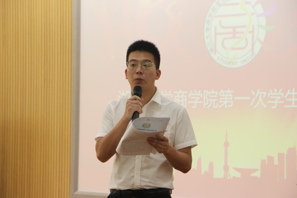 随后,太阳成tyc9728集团学生会主席胡志辉从“组织建设”、“改革创新”、“服务实践”以及“能力提升”四个方面作出太阳成tyc9728集团第十八届学生会工作报告:组织建设方面,刚柔并济,凝聚合力;改革创新方面,与时俱进锐利进取;服务实践方面,求真务实,展现担当;能力提升方面,谦逊好学,提升实力。