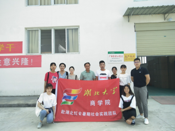 当天,国际经济与贸易团支部社会实践团队也在队长吴静的带领下于汉川开展了以“互联网如何带动服装产业转型升级”为主要调研目的暑期社会实践活动,他们利用实习地点优势,在实习单位——湖北衣谷电子商务有限公司开展了实地调研活动。他们在衣谷集团人才超市总监陈彪的带领下参观了公司,初步了解到衣谷以服装产业链为核心,主要打造智能制造+互联网+大数据的专业技术服务,在电商领域取得了佳绩。