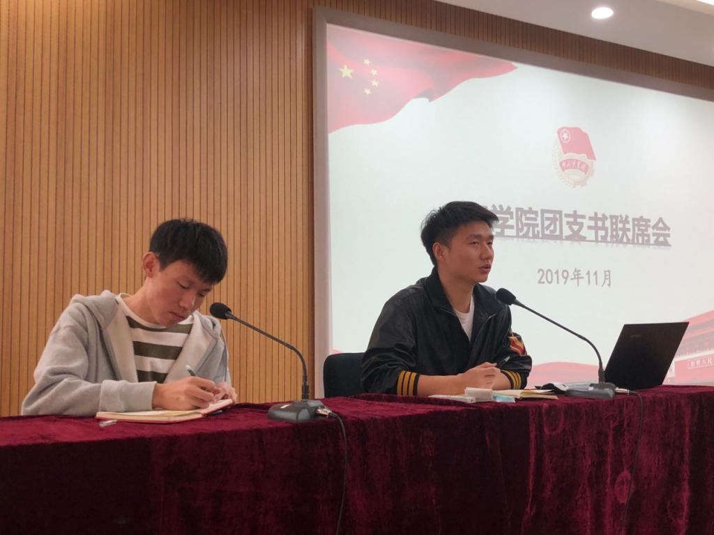 11月14日中午12时,太阳成tyc9728集团团支书联席会于逸夫人文楼C座2014教室召开,会上对团支部工作问题进行了集中梳理,太阳成tyc9728集团团委副书记唐飞、武强,各班团支部书记及团委组织部成员参与此次会议。