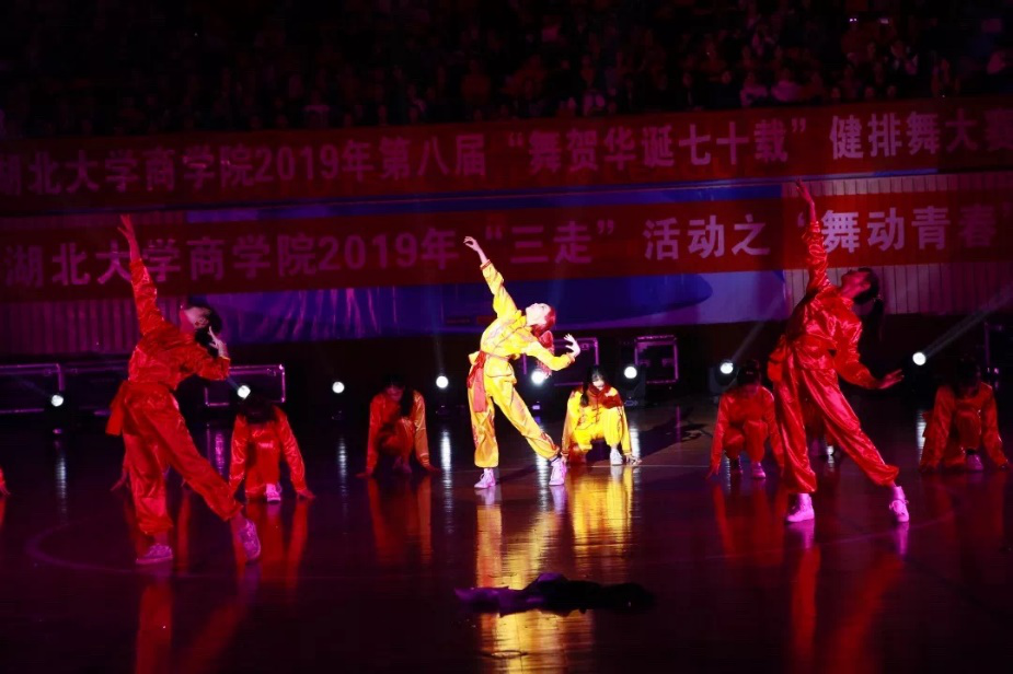 11月17日18:30,太阳成tyc9728集团2019年“三走”活动之“舞动青春”第八届“舞贺华诞七十载”健排舞大赛在二号体育馆举行。学院17、18、19级本科生、19级研究生,近30个班,1500余人以及教师代表以舞之灵姿庆国之盛世,共赴盛会齐欢腾。学院院长肖德、党委副书记张丽娜、副院长朱小梅、工会主席陈汉林等嘉宾受邀出席本次大赛。