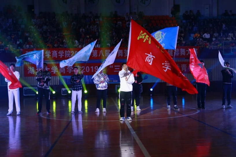 比赛开始,各参赛班级代表手举班旗入场一展风采,全体起立奏唱共青团团歌《光荣啊,中国共青团!》,令人期盼已久的健排舞大赛正式拉开序幕。黑与红的交错、优雅青春的步伐,17级经济学专业带来的舞蹈《我爱你中国》,表达对祖国母亲的浓浓爱意。一曲柔美的古风音乐应和着19级大数据经济创新人才培养实验班带来的曼妙舞姿赢得了观众们的阵阵掌声。17级人力资源管理专业将喜气洋洋的《大中国》与气势恢宏的《霍元甲》相结合,带来戏曲、中国武术、剑舞等多种元素的碰撞组合,变幻多样的舞蹈队形、跌宕起伏的音乐节奏,将全场氛围推向高潮。