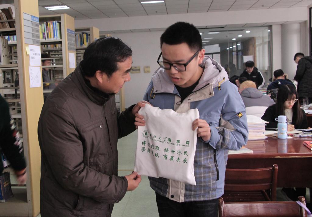 为确保每名考研学子都能收到此份暖心祝福,学院统计了全院371名考研学生的名单,并在图书馆门前设点,为大家发放暖心激励大礼包。“学姐学长考研加油噢,这是学院为大家准备的大礼包,祝你们能顺利考入理想院校!”志愿者们在发放礼包的同时,也不忘为考研学子送出诚挚的祝福。