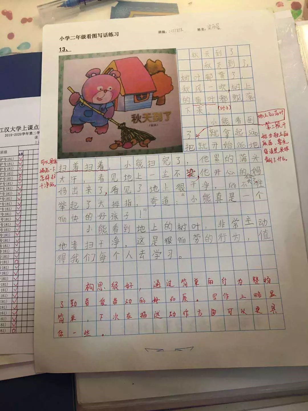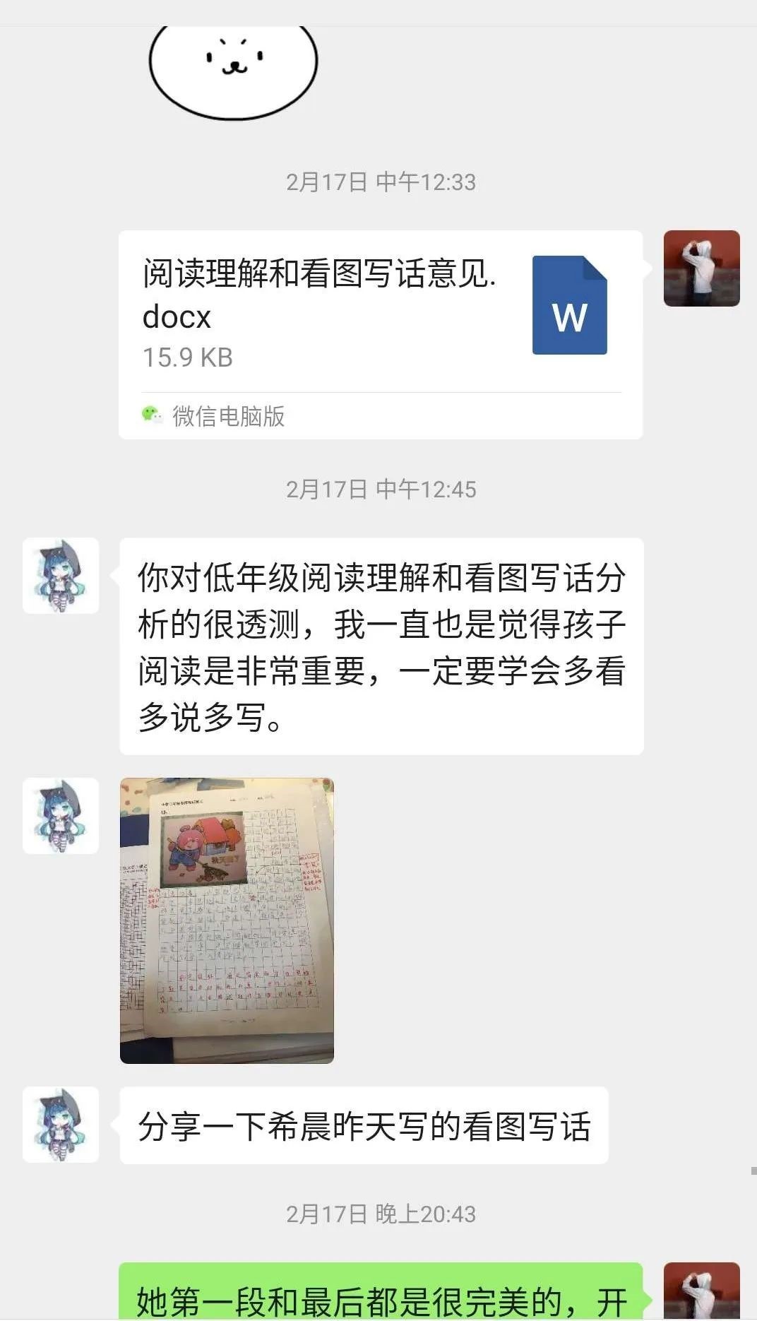 小梁同学是一位二年级学生,各个方面都非常优秀。小梁的爸爸妈妈都在疫情防控的一线,危险性很大,小梁暂时住在舅妈家。因年龄较小,我便一直跟她的妈妈交流沟通,她需要对阅读理解和看图写话进行专题辅导。一开始我还很担心,因为语文(阅读理解和看图写话)是很难在短期有成效的。为此,我刷遍了知乎,还做了几套二年级阅读理解和看图写话,终成《阅读理解和看图写话辅导意见》。小梁同学的妈妈虽然在一线,但是每天都抽出时间关心孩子,与我交流辅导经验,后文附上小梁同学看图写话一篇。
