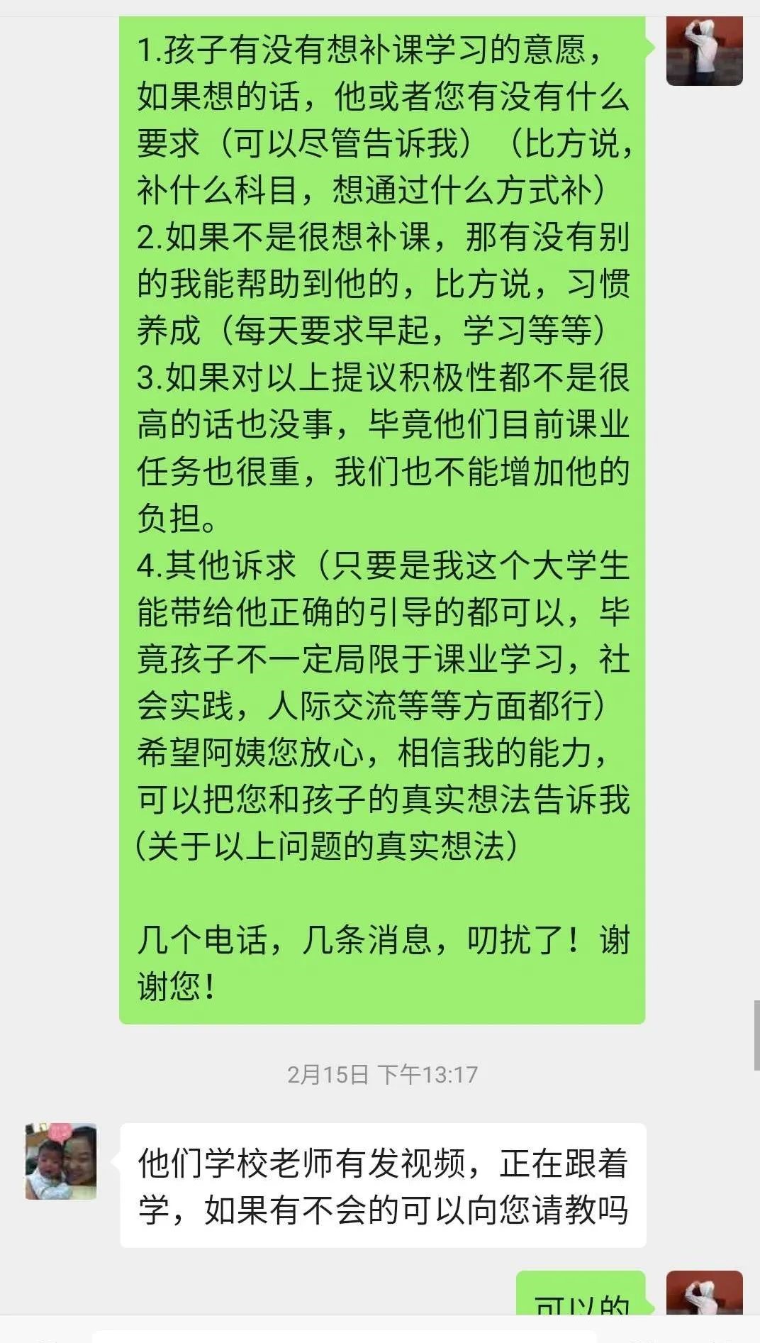 刚拿到对接信息条,心情非常复杂。有初为“人师”的喜悦和忐忑,有对神秘小游的好奇和紧张……一切一切的情绪融入初次电话的话术“创作”中,终于,电话通了,第一次听到小游和小游妈妈的声音。