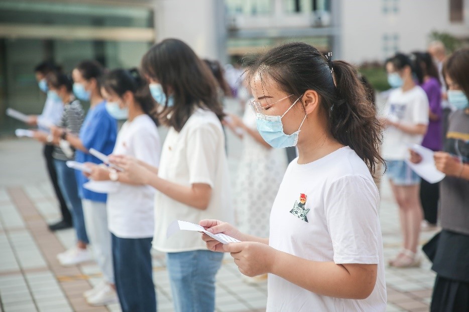最后,在学生代表黄巧悦的带领下,全体与会人员进行新学期、新征程的入学宣誓,表达了树立大局意识,做好疫情防控、努力学习科学文化知识,提高自身综合素质的坚定信心。
