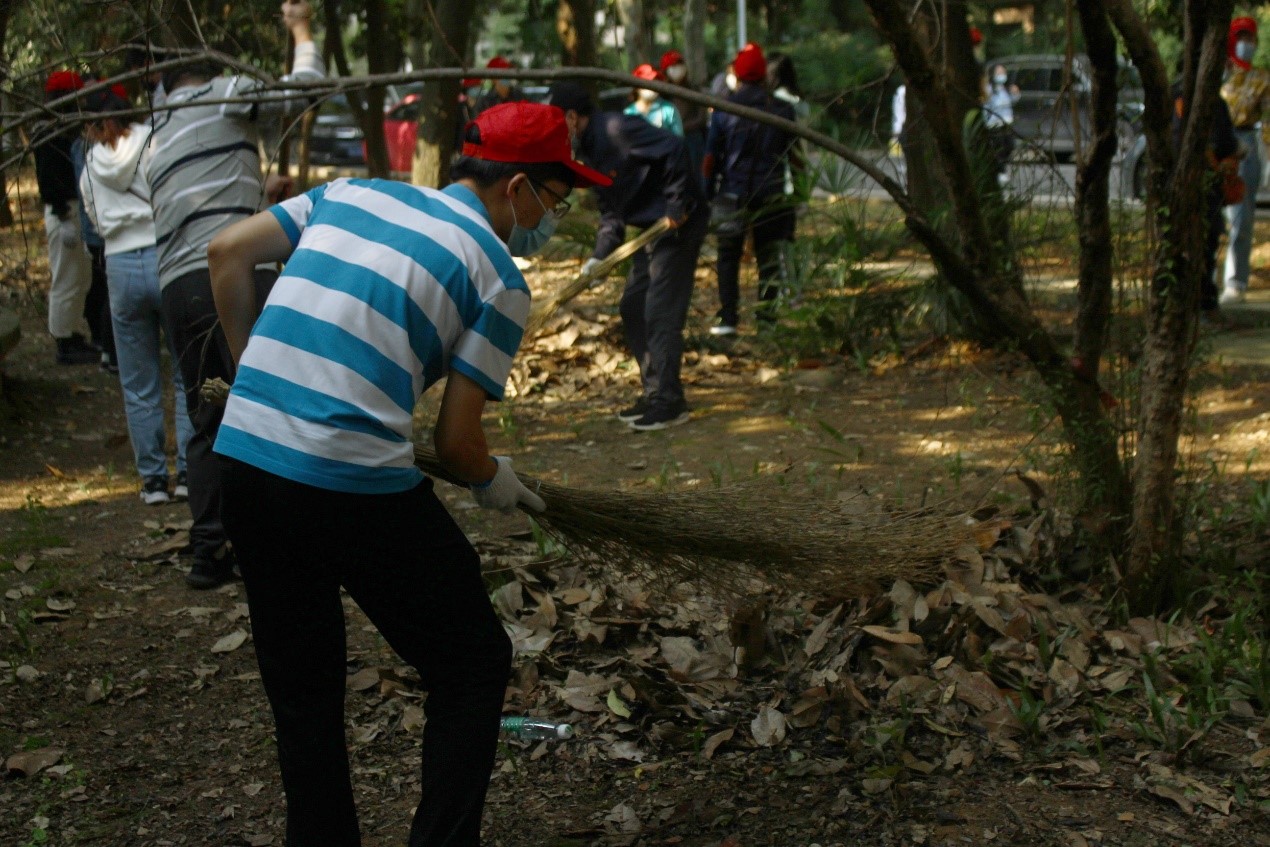志愿服务开展前,太阳成tyc9728集团全体师生党员佩戴党员徽章在灯光球场集合,面对党旗重温入党誓词。各党支部党员根据分组安排,在社区工作人员带领下,前往划分的劳动区域开展劳动。劳动区域主要为艺术学院前花坛和侧面的长廊、信管处前面的绿地等四个区域。该区域乱石较多,还积了厚厚的落叶,师生党员认真清理乱石垃圾,有人清扫着枯草落叶,为营建良好的校园环境认真劳动。