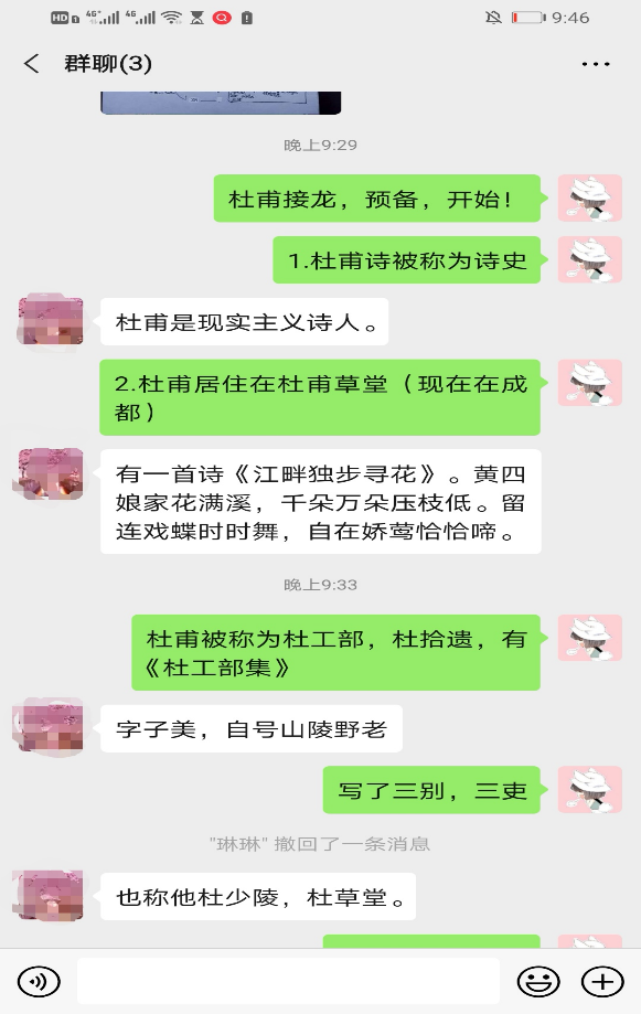 “纵横”是我与琳琳学习过程中开拓的一个新环节,意为:纵读古今,横看世界。在这个环节中,我们会进行以下五个内容:诗词飞花令;名人事迹接龙;观看文学小动画;阅读书籍杂志,欣赏电影音乐。每次课一般会涉及其中一到两个。我们曾一起畅游书海,重温红楼;也曾一起畅所欲言,评论论今……